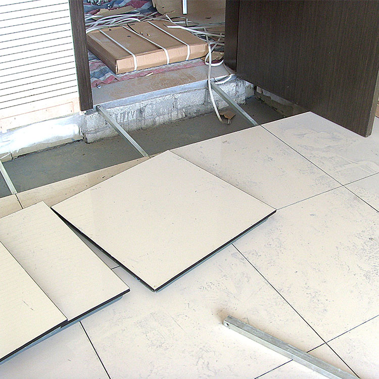 直鋪式防靜電瓷磚地板的施工和普通地磚地板相類似,都是直接在地面上鋪設(shè)瓷磚,它們的不同在于采用了防靜電瓷磚,而且還在防靜電瓷磚下結(jié)合層上鋪設(shè)了一層網(wǎng)格狀銅帶導(dǎo)電層,并且有合理的接地系統(tǒng),這樣使得地磚地面電位接近大地電位,從而獲得更可靠得防靜電性能。直鋪式防靜電瓷磚地板施工程序是先將結(jié)構(gòu)地面找平,然后鋪設(shè)摻有導(dǎo)電粉的水泥砂漿結(jié)合層,并在結(jié)合層上鋪設(shè)導(dǎo)電銅帶,將縱橫向?qū)щ娿~帶互相焊接成網(wǎng)格狀,再在導(dǎo)電銅帶上鋪設(shè)防靜電瓷磚地板并勾縫,^后安裝銅帶端接地系統(tǒng)并對整個導(dǎo)電系統(tǒng)進(jìn)行測試,這樣整個防靜電瓷磚地板即施工完成。
