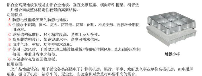 鋁合金地板采用高壓壓鑄工藝,鋁錠熔化后,經(jīng)高壓壓鑄機一次性真空壓鑄成形,融合了鋁合金耐腐蝕、高強度的特性,地板表面可根 據(jù)需要進行環(huán)氧噴粉或鎳鉻電鍍,從而表面達到柔光、防腐、耐磨效果。